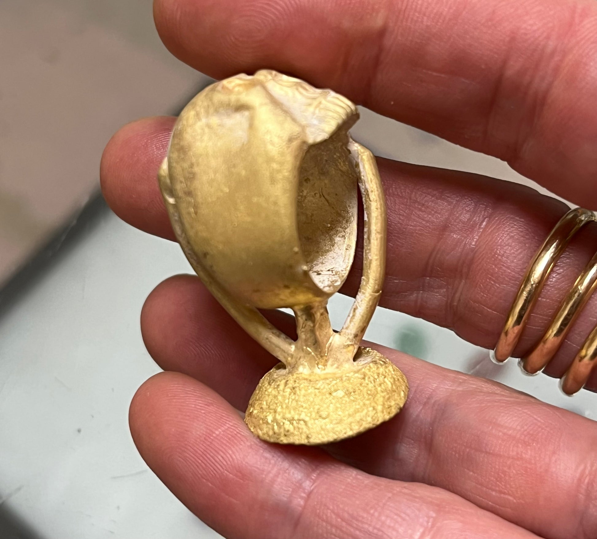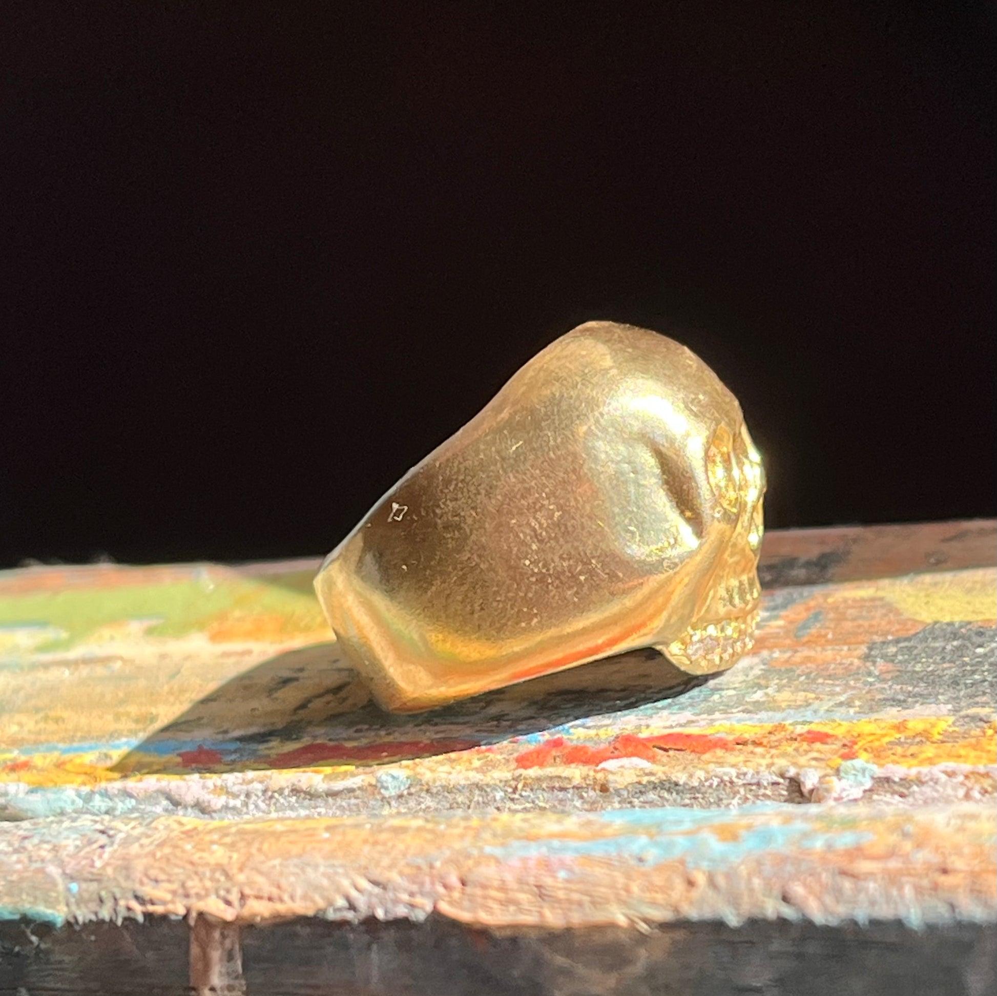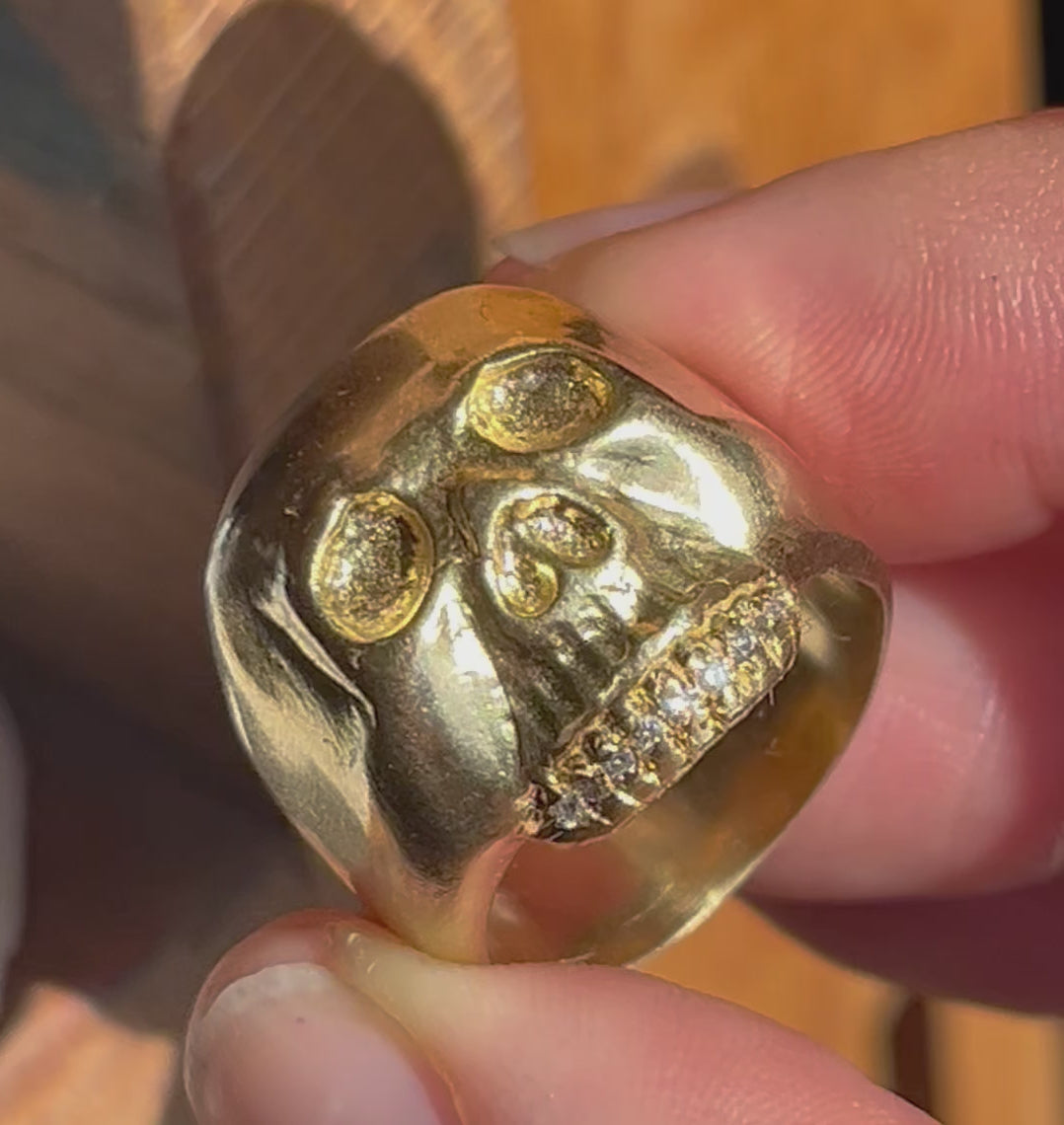 18k skull with a full set of diamond top row teeth. size 7.5, 28.5g. This listing is for a custom made ring. Please email for specific sizing, otherwise will be produced as is in this listing and ready in 2-3 weeks.