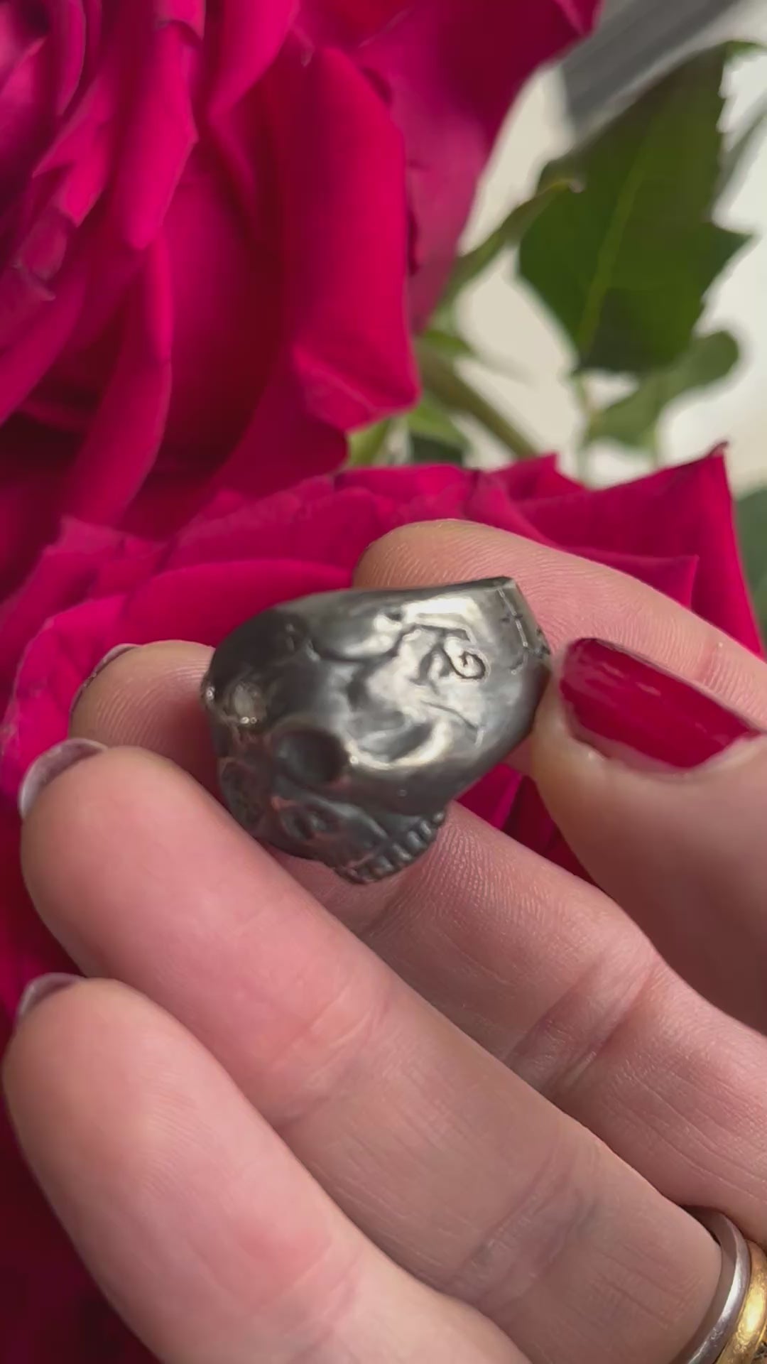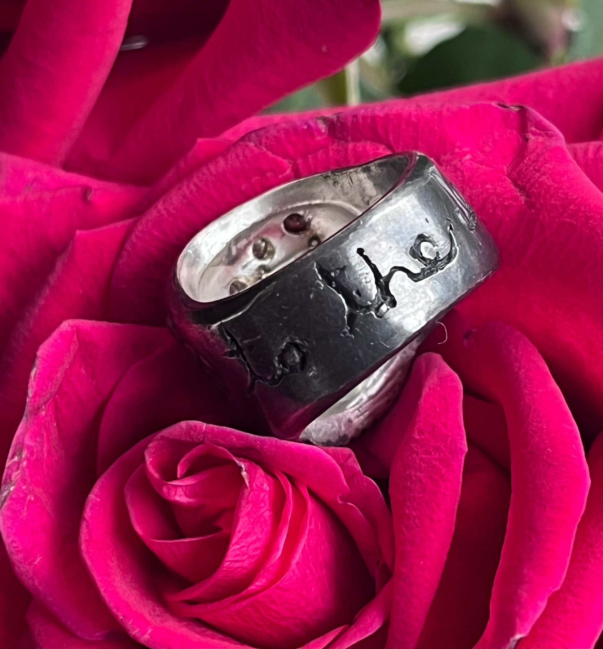 This ring has sold. Every one of our skull rings are OOAK , for one similar to this, pricing is around $2100. We love hand etching and commissions can include your favorite word or phrase. This listing is for a deposit of $1200 to start the project. Please email us with your size and other specifics. Expect a turnaround time of 3 weeks.