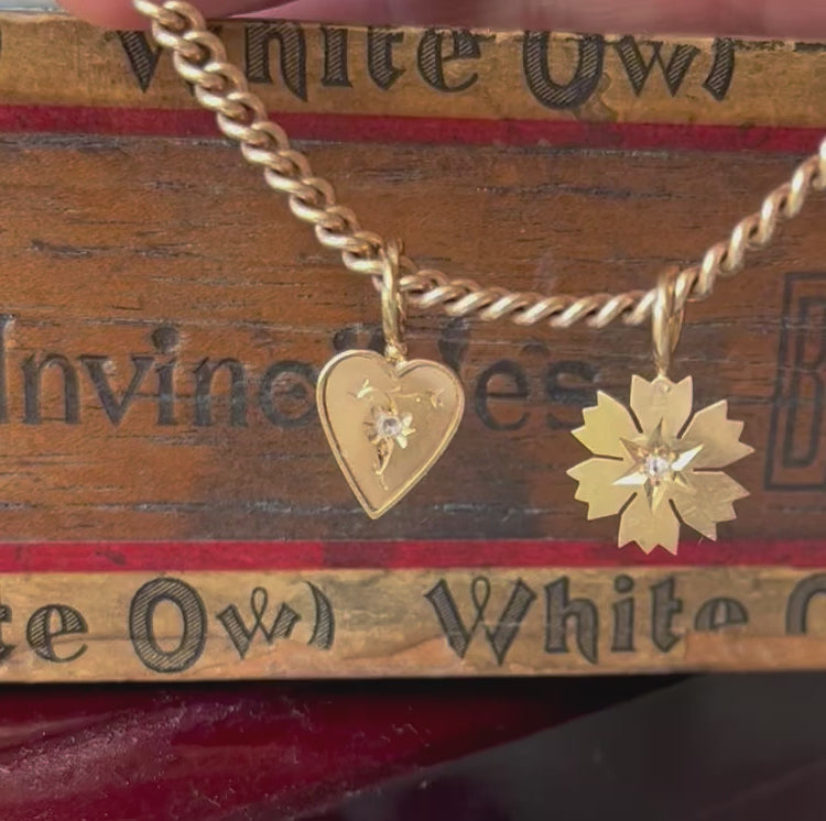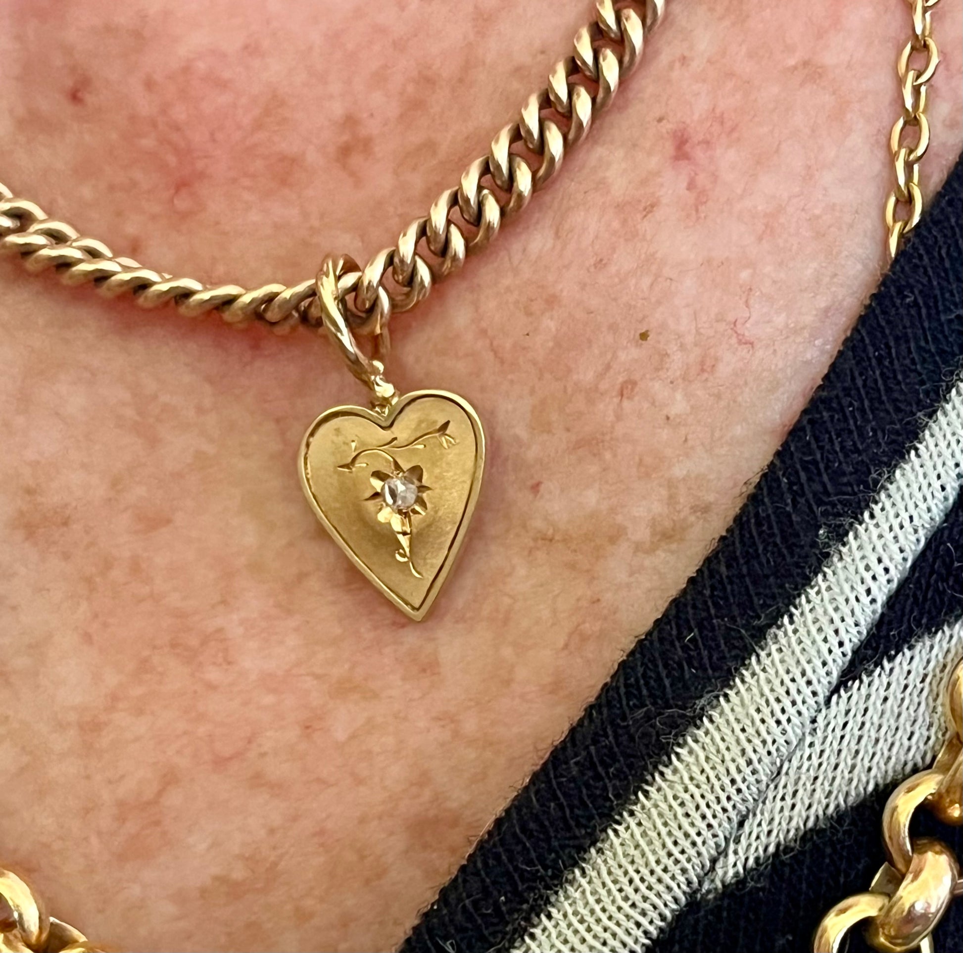 10k heart, etched and set w a tiny omc diamond as well. .86g.