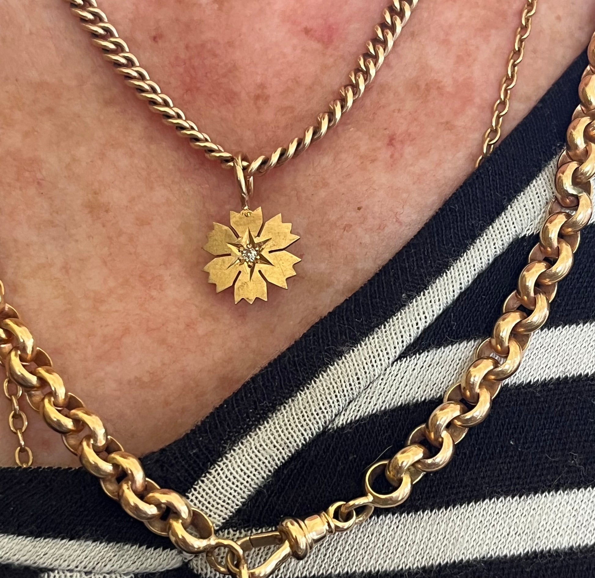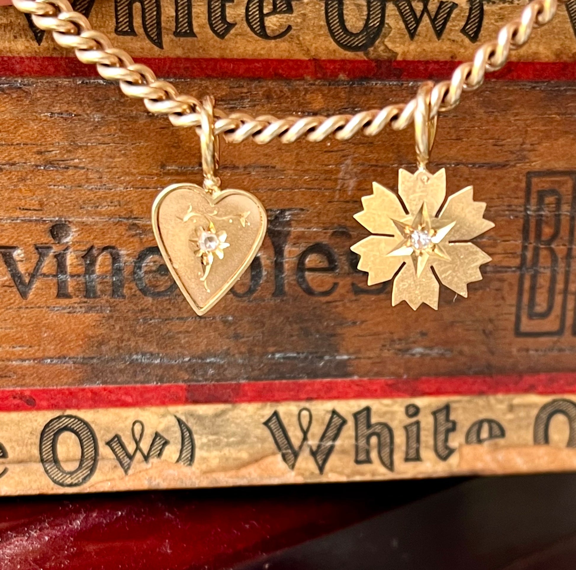 15k snowflake (have you ever been called one? It made me lol) set w a teeny omc diamond. 1.14g.
