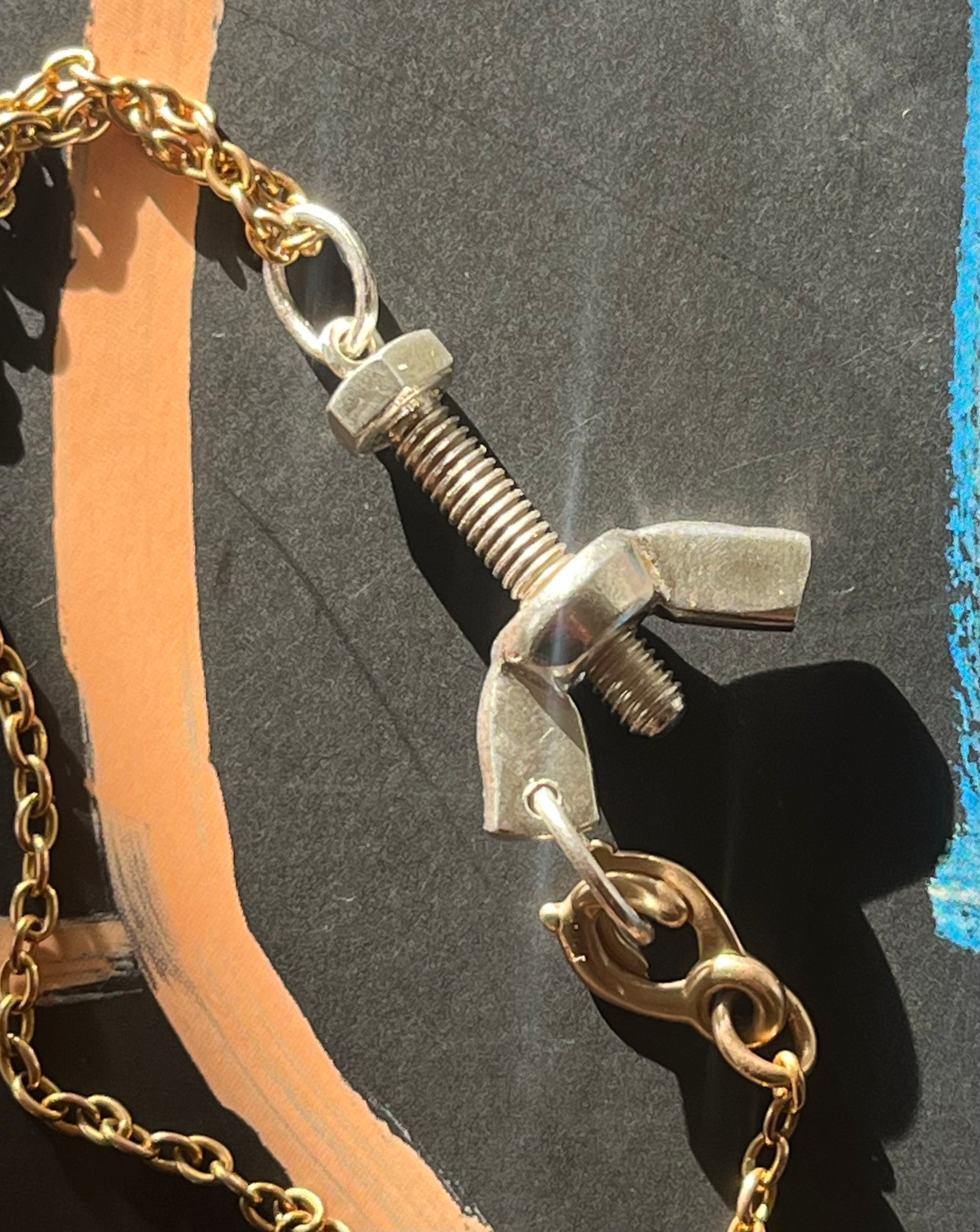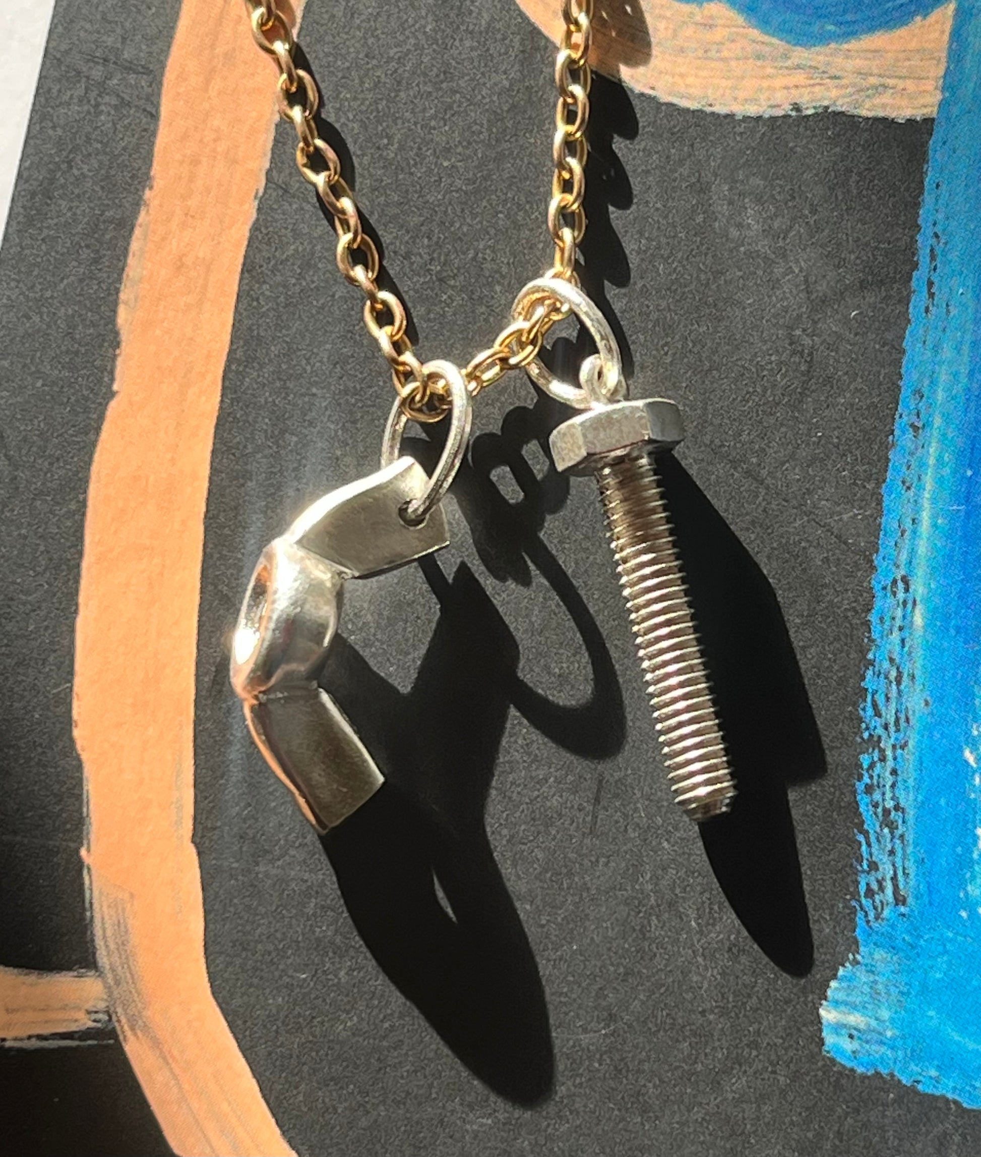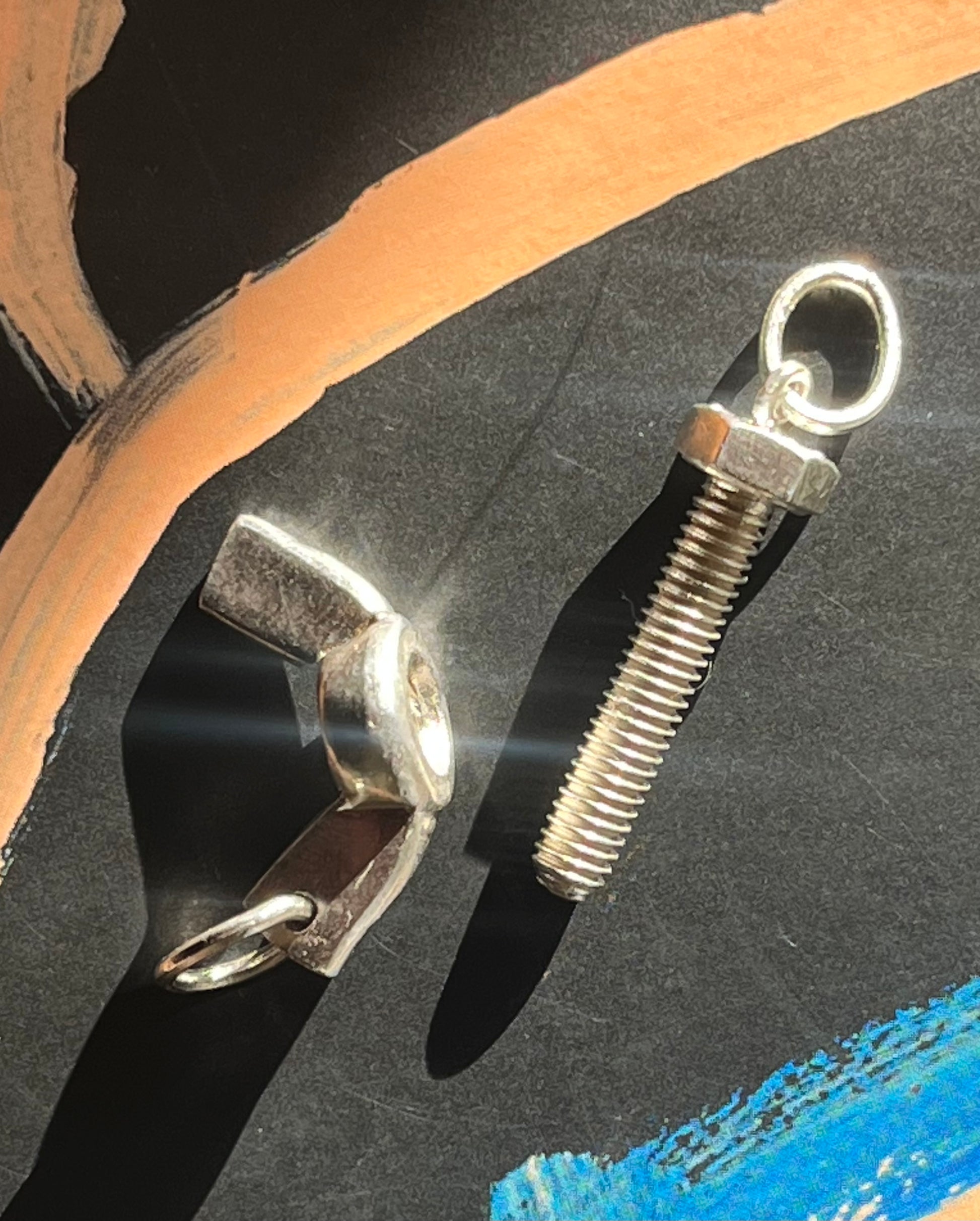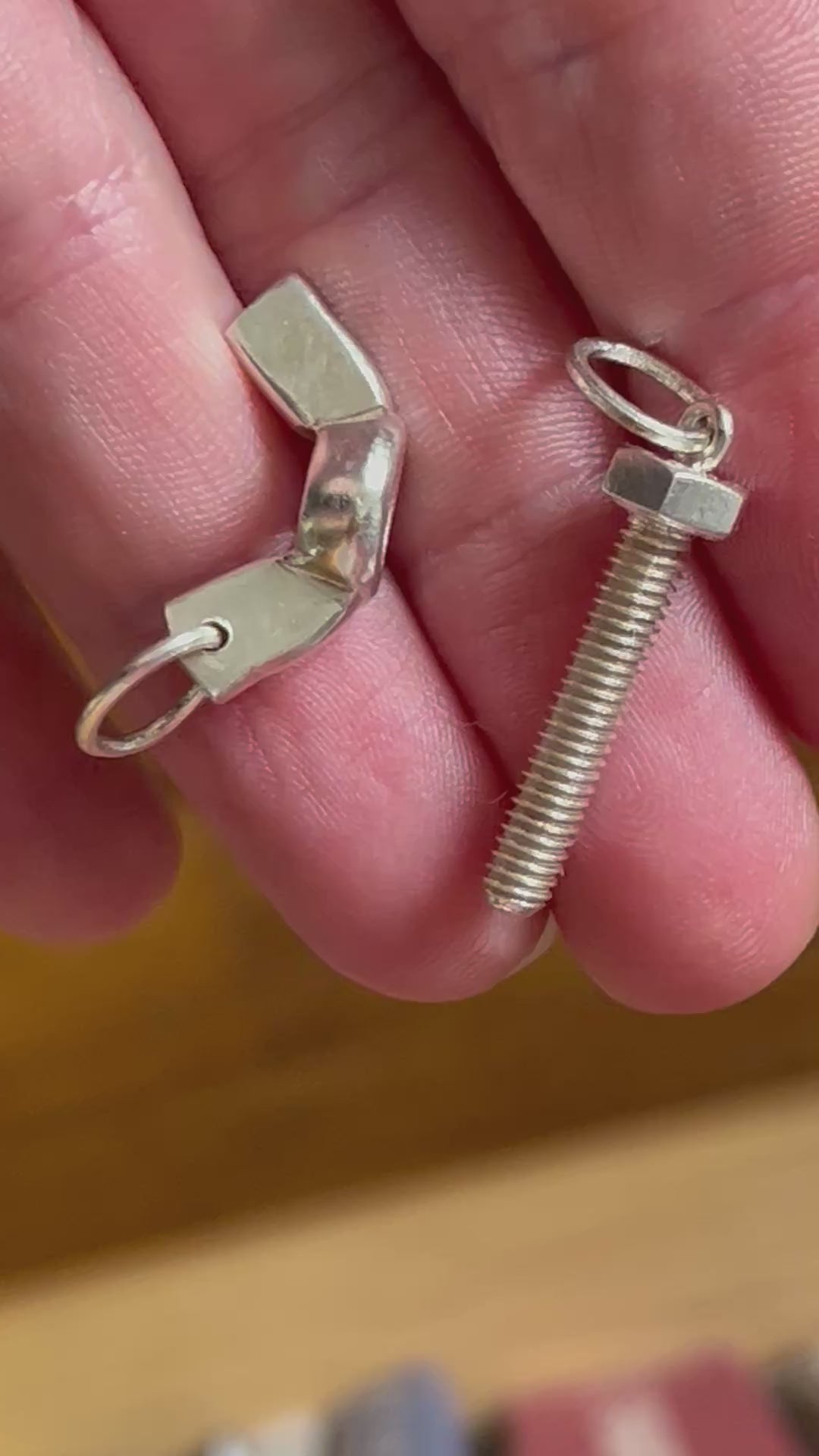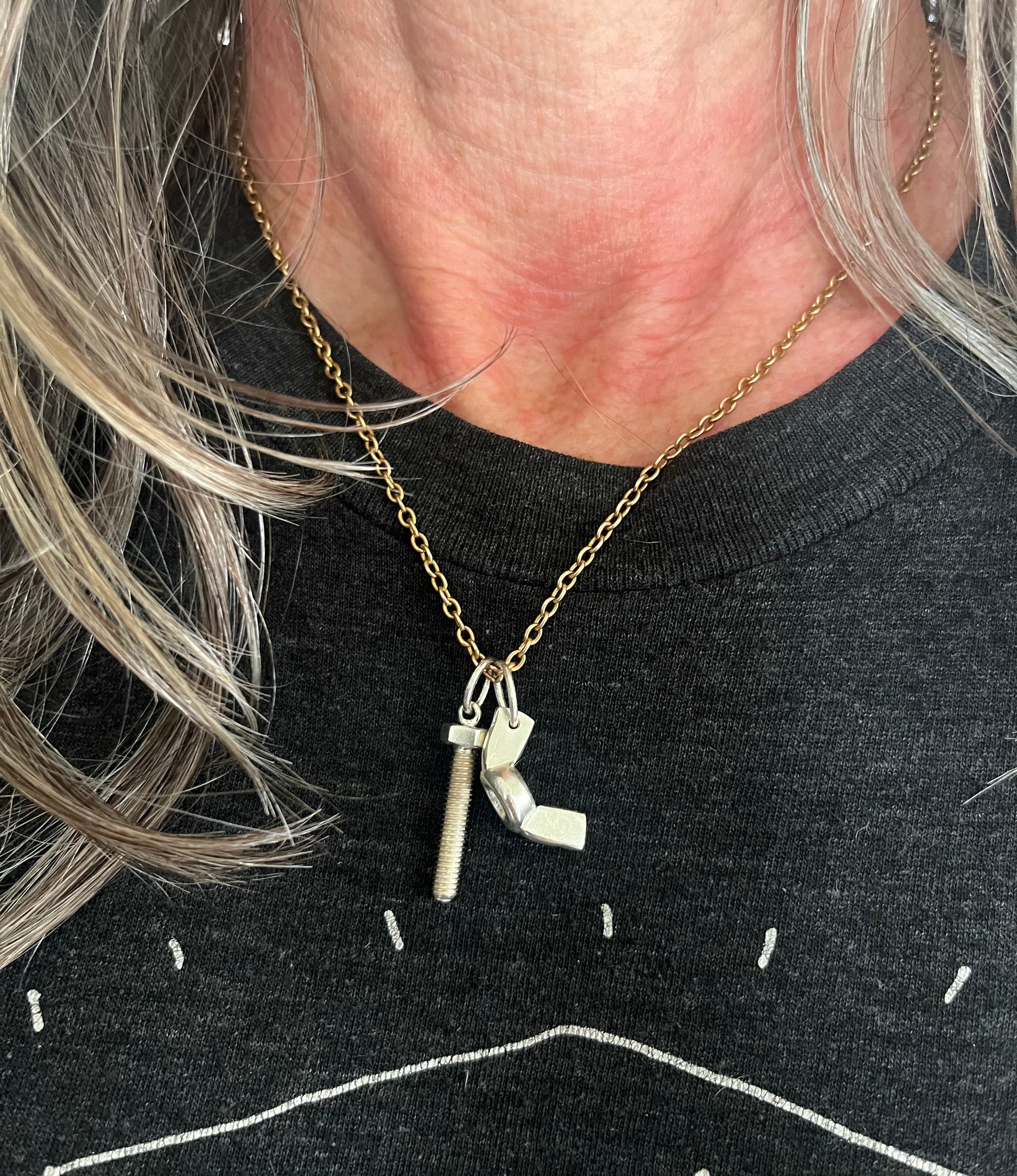 "You are the wingnut to my bolt." Plain or blackened sterling silver, this listing is for the plane Silver. If you would prefer blackened shoot us an email.